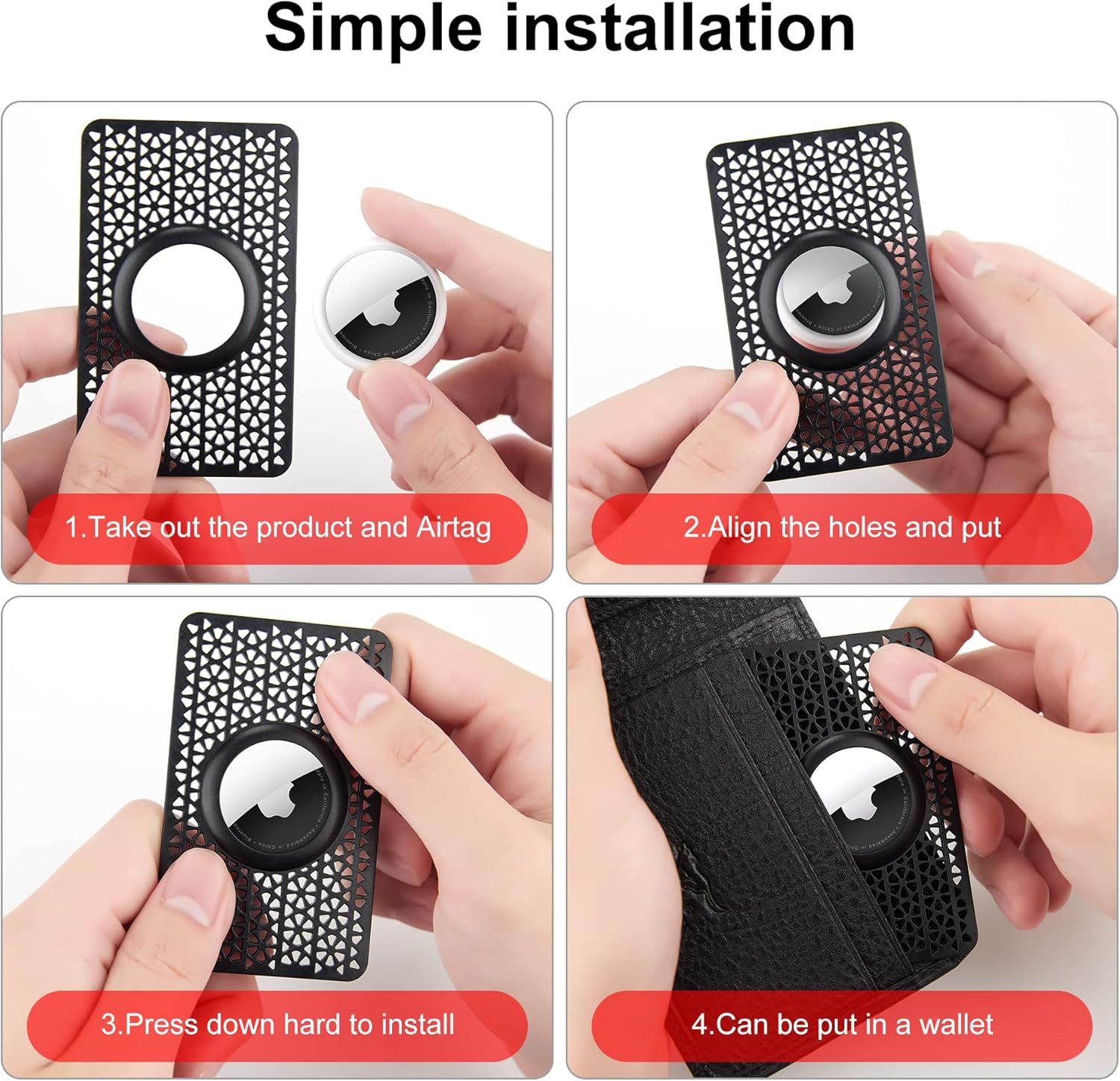 Crafted with precision, this Airtag Wallet Case is slim and sleek, making it an ideal choice for purses, handbags, backpacks, and clutches. The black color adds a touch of elegance to your accessory collection while providing a secure spot for your Airtags.